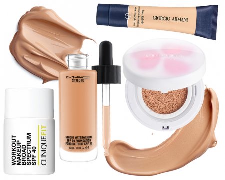 Тональное Средство Studio Waterweight, M.A.CТональная основа-кушон Petal Skin Cushion Foundation, She UemuraТональный мусс Face Fabric, Giorgio ArmaniТональный крем Fit Workout Makeup SPF 40, Clinique