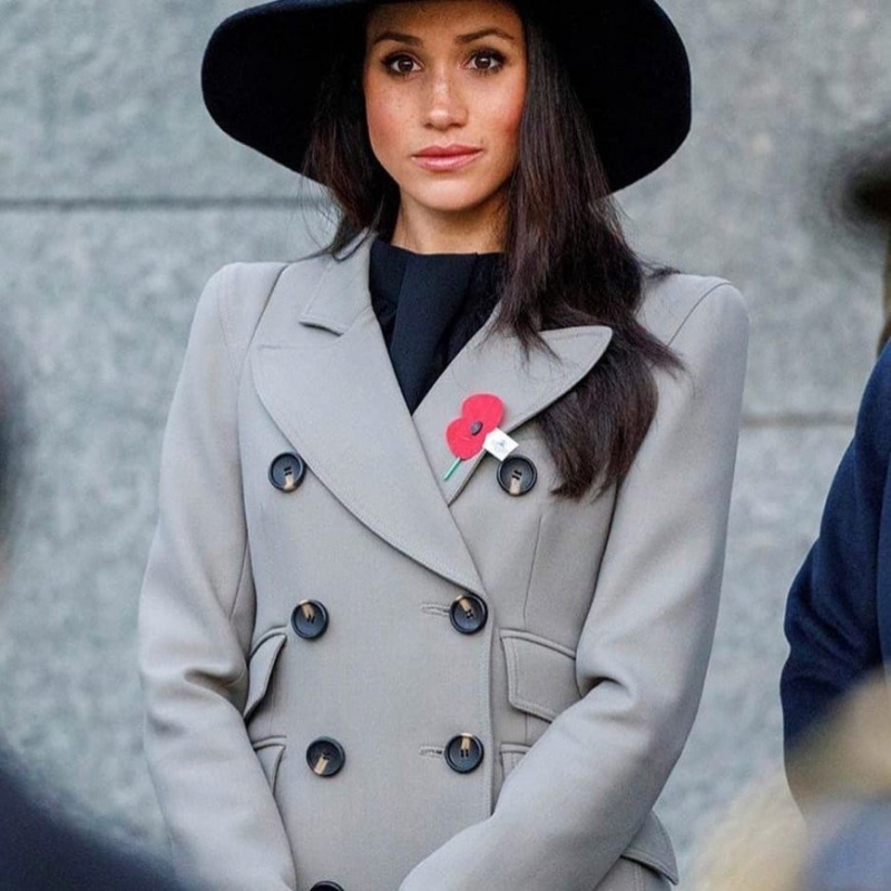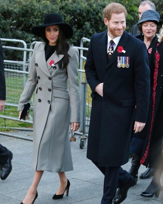 На днях Меган Маркл и принц Гарри посетили службу возле Арки Веллингтона, посвященную Дню АНЗАКа – национального праздника Австралии и Новой Зеландии. Невеста появилась на мероприятии в сером двубортном пальто, к которому прикрепила брошь в форме макового цветка, чтя память жертв Первой мировой войны.