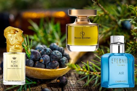 Аромат Eau du Soir от Sisley; аромат Bohea Boheme от Mona di Orio; аромат Eternity от Calvin KleinУ можжевельника смолисто-дымчатый, хвойно-древесный аромат. В запахе эфирного масла можжевельника различимы оттенки скипидара, придающие ему резкость и насыщенность. Видимо, эти характеристики и сделали этот ингредиент мужским.