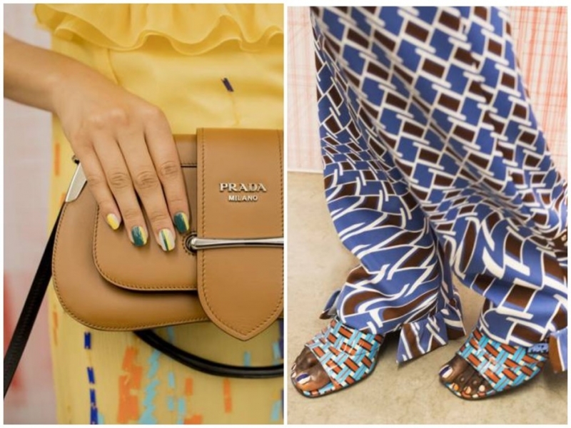 Показ круизной коллекции Prada подтвердил — в топе маникюр и педикюр с полосками и логотипами (на ногтях моделей красовались лаконичные надписи Prada). Логотипы — это, конечно, вкусовщина, а вот разноцветные полоски разной ширины подойдут всем желающим проявить свою оригинальность. Самые перспективные дуэты — синий и оранжевый, зеленый и желтый, синий и белый. Яркие платья и брюки, кстати, маникюр и педикюр в такой расцветке не отменяют.