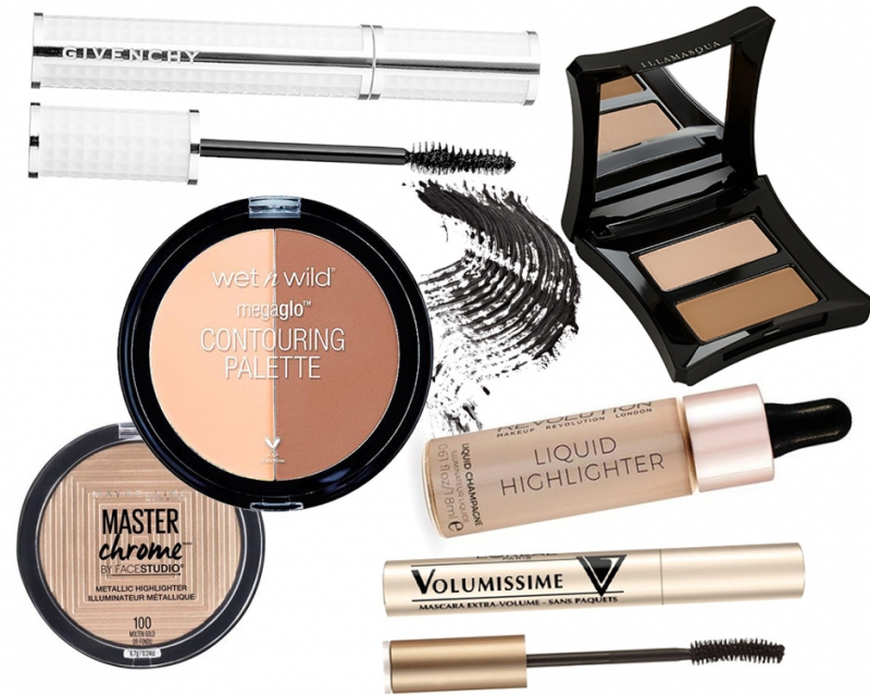 Жидкий хайлайтер Liquid Highlighter, Make Up RevolutionТушь Volumissime Extra Volume, L'Oreal Paris Хайлайтер Master Chrome, Maybelline NYПалетка для контуринга Contouring Palette, Wet'N'WildПудра-скульптор Sculpting Powder Duo, IllamamasqueТушь Noir Couture, Givenchy