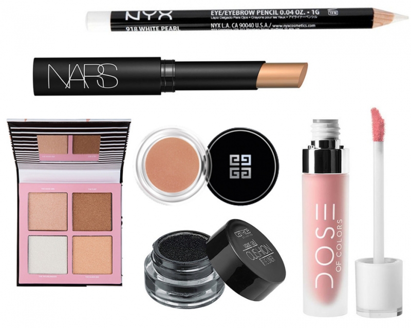 Палетка хайлайтеров Shimmer Squad, LottieГелевая подводка Eye Liner Matt Cushion, CatriceЖидкая матовая помада, Dose Of ColoresКремовые тени Ombre Couture Cream Eyeshadow, GivenchyКарандаш для глаз Eye/Eyebrow Pencil, NYXКонсилер Stick Concealer, Nars