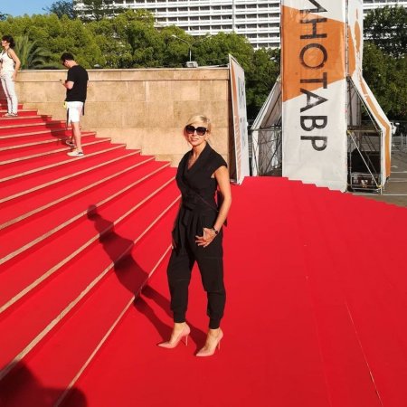 Известная певица Алена Свиридова присоединилась к множеству знаменитостей, которые покинули столичные холода и отправились в курортный город Сочи, где сейчас близится к завершению кинофестиваль «Кинотавр». Там артистка посетила конкурсный показ фильма Ивана Твердовского «Подбросы», по такому случаю достав из своего гардероба элегантный черный комбинезон с зауженными штанинами, который подчеркнул стройную фигуру.