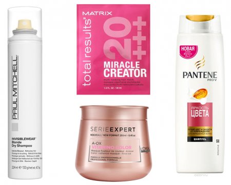 Сухой шампунь для блондинок Dry Shampoo, Paul MitchellШампунь для яркости цвета, PanteneМногофункциональная маска для волос Miracle Creator, MatrixМаска для окрашенных волос Vitamino Color, L'Oreal Professionnel