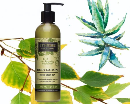 3Банка из магазина. Березовый лосьон для тела с экстрактом зеленого чая и алоэ вера от Stenders выполняет сразу несколько функций (мы обожаем такие многофункциональные средства): увлажняет, успокаивает кожу и дарит «зеленый» аромат. Лосьон быстро впитывается в кожу, не оставляя пленки. Цена: 1240 рублей.