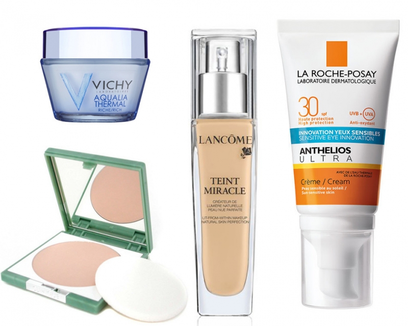 Солнцезащитное средство для лица Anthelios Ultra, La Roche-PosayТональное средство Teint Miracle, LancomeНасыщенный крем для сухой кожи Aqualia Thermal, VichyКупить Некомедогенная пудра Superpowder Double Face Powder, Clinique