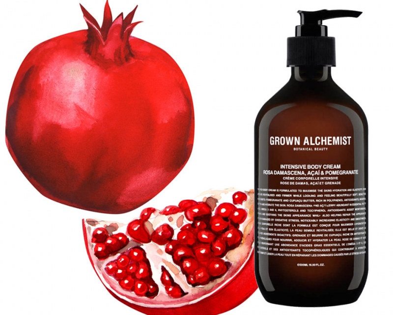Александра 12-июл, 14:00 1 521Крем для увлажнения. «Воды!» — буквально умоляет кожа в жару, средства с гранатом как раз умеют ее доставить (правда, важно знать правила, чтобы не переборщить с этим самым увлажнением). Крем для тела Intensive Body Cream от Grown Alchemist интенсивно увлажняет и питает кожу. Экстракты дамасской розы, граната и асаи способствуют регенерации клеток, придают коже эластичность и смягчают наиболее сухие участки. Крем подходит для всех типов кожи. Цена (за 500 мл): 3500 рублей.