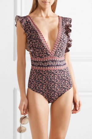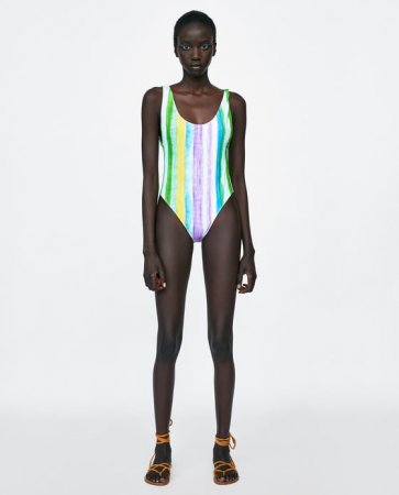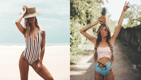 — отсутствие четких линий (отстрочки, косточки, выделенная чашка). -психоделические принты и яркие цветочные рисунки. Иногда это выражается не в самом купальном костюме, а в аксессуарах в первую очередь — парео, сумки, платки в прическу и так далее.