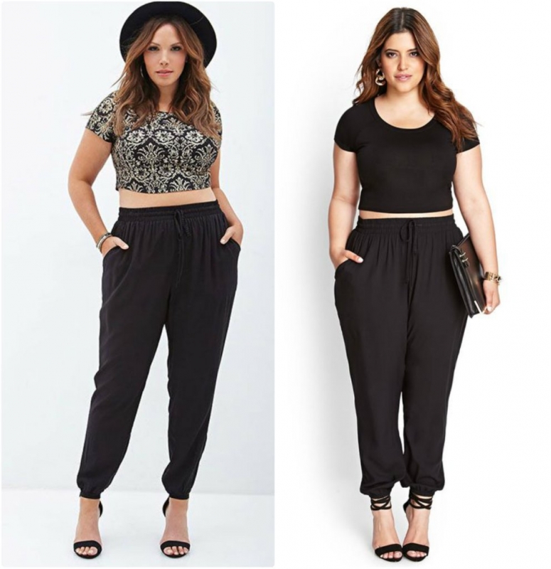 Не ожидали в нашей подборке встретить укороченный топ? Многие уверены, что укороченные топы, или как их сейчас принято называть кроп топы, подходят исключительно обладательницам стройной фигуры. А вот и нет. Укороченный топ на пышных формах выглядит отлично, если совмещен с брюками, джинсами или юбкой с высокой посадкой.