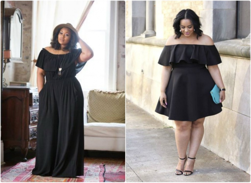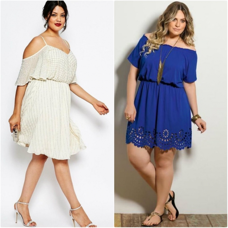 Платья с открытыми плечами хорошо смотрятся не только на худышках. Не верите? Тогда смотрите.