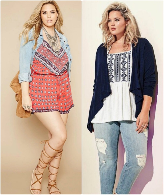Стиль бохо для полных девушек это табу? Сегодня мы попытаемся развеять все стереотипы, касающиеся этого вопроса.Стиль бохо выбирают те, кто любит свободу мыслей, творчества и не зависит от чужого мнения. Так кто тогда сказал, что стиль бохо для полных под запретом? Перед вами наша подборка образов в стиле бохо plus size, наверняка, какие-то идеи вам понравятся, и вы возьмете их на вооружение. Итак, погнали. Длинные платья в стиле бохо. Что может украсить девушку лучше и сделать ее еще более женственной, чем длинное платье? Струящиеся ткани, летящие и романтичные, в таком образе хочется сразу бежать на свидание или важное мероприятие. Длинные платья в стиле бохо садятся прекрасно на любой фигуре. Ведь бохо – это сама женственность во плоти. Укороченный топ. Не ожидали в нашей подборке встретить укороченный топ? Многие уверены, что укороченные топы, или как их сейчас принято называть кроп топы, подходят исключительно обладательницам стройной фигуры. А вот и нет. Укороченный топ на пышных формах выглядит отлично, если совмещен с брюками, джинсами или юбкой с высокой посадкой. Кардиганы в стиле бохо. Сделать силуэт стройнее помогут вертикальные линии кардигана. Он отлично дополняет любой образ, с шортами, брюками, юбками, платьями. Открытые плечи. Платья с открытыми плечами хорошо смотрятся не только на худышках. Не верите? Тогда смотрите. Комбинезоны для полных. Лето – пора комбинезонов. Если в вашем гардеробе еще нет ни одного комбинезона по причине того, что вы думали, что вам он просто не пойдет, тогда самое время поменять свою точку зрения. Брюки в стиле бохо. Полненьким девушкам отлично подойдут широкие брюки. Модные, нынче, кюлоты не исключение. Бохо кимоно. Ни один гардероб в стиле бохо не обходится без кимоно. Если вы всегда думали, что это исключительно пляжная одежда, то вы ошибались. Бохо кимоно отлично вписывается в повседневный городской лук. Шорты в стиле бохо. Многие обладательницы пышных форм убеждены, что шорты им строго противопоказаны. А вот и зря. Только посмотрите на представленные модели, девушки на них выглядят просто сногсшибательно. Согласны? Геометрия. Геометрические узоры в любом их проявлении. Умелое сочетание геометрических принтов создаст неповторимый образ в стиле бохо. Платье рубашка. Платье рубашка, пожалуй, является одной из самых универсальных вещей в гардеробе. Ее можно сочетать не только с брюками и джинсами, но и носить, как полноценный наряд самостоятельно. Рубашка с этно принтом. Этно принты в гардеробе бохо модницы встречаются неоднократно. Чаще всего это рубашки и топы. Используйте их в сочетании с другими современными вещами и получите совершенно новый и неповторимый образ. Всем бохо!