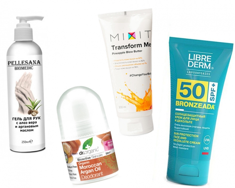 Антицеллюлитный крем, MIXITСолнцезащитный крем для лица, Libre DermКупитьДезодорант с маслами арганы и макадамии, Dr.OrganicКупитьГель для рук, PellesanaКупить