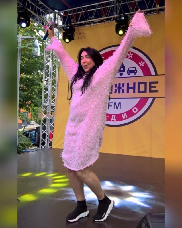Виктор 27-июл, 12:02 1 606Лолиту Милявскую пригласили на мероприятие в честь празднования 15-летия одной из радиостанций, и для выступления на маленьком концерте звезда предпочла удобный домашний образ сценическим нарядам. Ее розовое вязаное платье-кофта смутило почитателей, отметивших, что Лолита, по всей видимости, совсем не уважает своих зрителей, поднимаясь в таком виде на сцену.