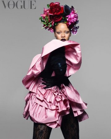 Рианна в оригинальном образе украсила обложку британского Vogue. Знаменитая исполнительница позировала с цветами на голове и ярким макияжем. Особое внимание привлекли нарисованные черным карандашом или подводкой брови-нитки, именно такие, которые были очень популярны несколько десятков лет назад. В обычной жизни певица предпочитает натуральную растительность над глазами, потому фанаты надеются, что снимки обработаны в фотошопе или же дело в искусном гриме.