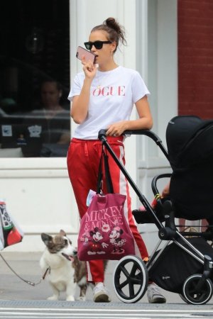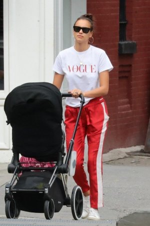 Многие женщины с подачи именитых кутюрье давно доказали всему миру, что спортивный стиль тоже может быть элегантным. Ирина Шейк с ее предпочтениями в повседневной одежде является одной из тех знаменитостей, которых нельзя упрекнуть в отсутствии чувства стиля. Так, для очередной прогулки с маленькой дочерью модель выбрала яркие красные брюки с белыми полосками по бокам, дополнив их белой футболкой с принтом-логотипом на груди. Завершили звездный стиль Шейк белые кеды и солнцезащитные очки. В целом образ Ирины мог вызвать лишь восхищение, однако нашлось и немало насмешливых отзывов.