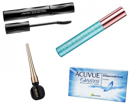 Тушь для ресниц Paradise Extase, L'Oreal ParisДвухнедельные линзы Oasys, AcuvueГипоаллергенная подводка для глаз Celebrities Eyeliner, Eveline CosmeticsТушь Full Lash Volume Mascara, Shiseido