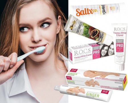 Паста с имбирем, SplatПаста с какао, DirtПаста с какао, Saltx CoЗубная паста с эффектом блеска с жимолостью и мятой, R.O.C.S.