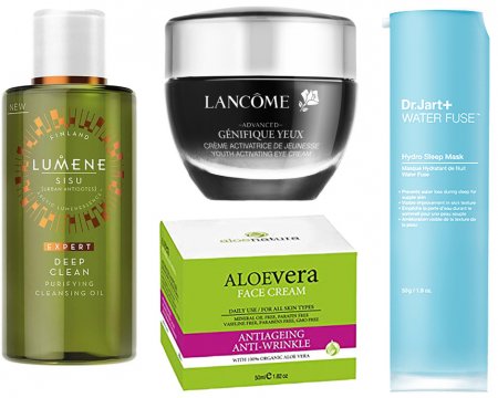 Антивозрастой крем, AloenaturaИнтенсивно увлажняющая ночная маска, Dr.Jart+Крем для глаз, LancomeГлубоко очищающее масло Sisu, Lumene