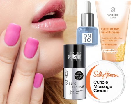 Масло для кутикулы Cuticle Oil, ONIQКрем для увлажнения кутикулы Cuticle Massage Cream, Sally HansenЗащитный крем Coldcream, Weledaлак LuxChrome Foil Effect Polish, Catrice