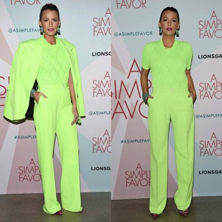 В то же время уравновесить свою феерию цвета Блейк решила легким макияжем и простой и лаконичной прической, туго собрав волосы в высокий пучок на голове.К слову, одета Блейк по последнему писку моды – неоновые цвета вновь набирают популярность и можно быть уверенным, что уже этой осенью в гардеробах всех модниц появится яркий лимонно-желтый цвет.