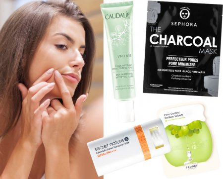 Маска для очищения пор, SephoraМатирующий флюид, сужающий поры, CaudalieСолнцезащитный праймер-стик для уменьшения пор, Secret NatureМаска с поросужающим эффектом, Frudia