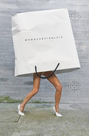 На днях Бекхэм оригинально отметила 10-летие своей торговой марки, устроив фотосессию… в пакете. Виктория облачилась в боди нюдового оттенка и надела белые туфли на высоком каблуке. В рамках рекламной кампании красавица представила лимитированную коллекцию футболок с принтами в виде ее ног, торчащих из фирменного пакета:«Этот сезон знаменует 10-летний юбилей моего бренда! Когда Марк Джейкобс показал мне, что я вышла из сумки около десяти лет назад, это действительно было началом моего путешествия в индустрию моды».