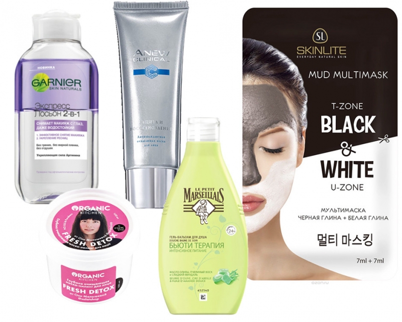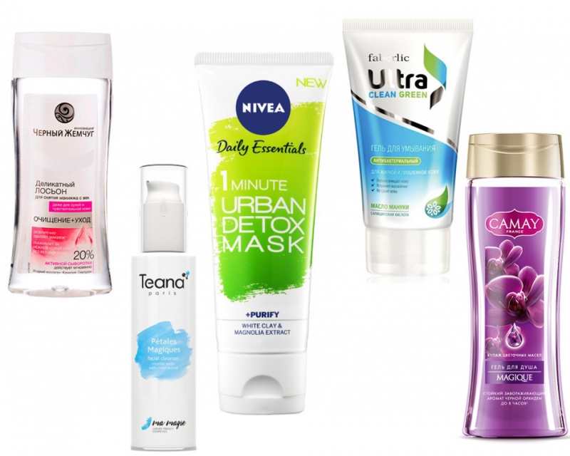 Гель для душа, Camay (144 рубля)Гель для умывания, Faberlic (149 рублей)Детокс-маска, Nivea (280 рублей)Средство для очищения лица, Teana (269 рублей)Деликатный лосьон для очищения, Черный жемчуг (216 рублей)