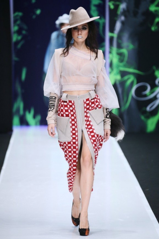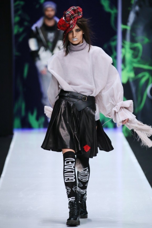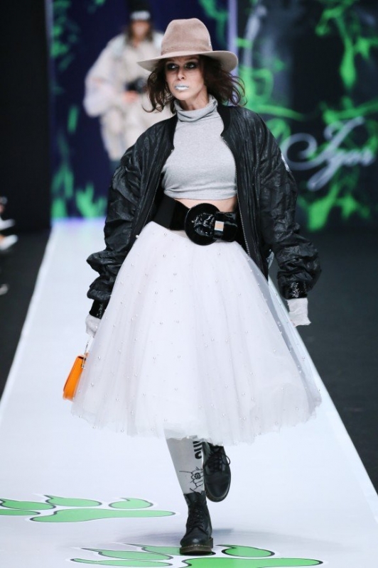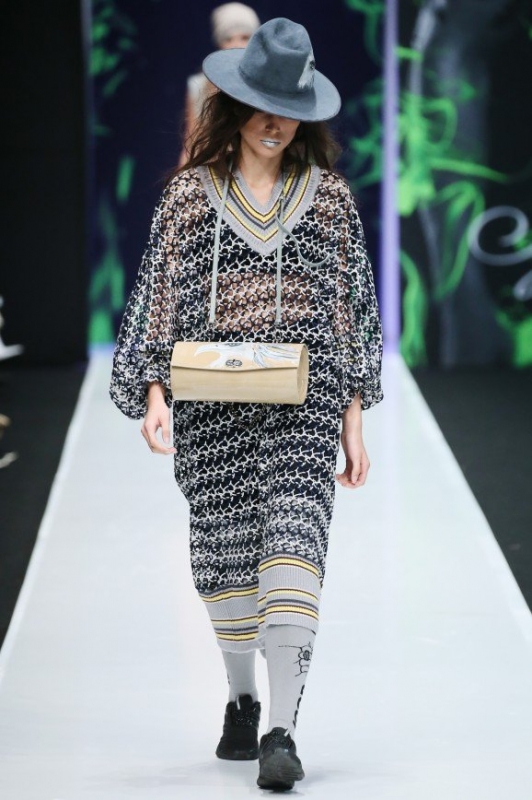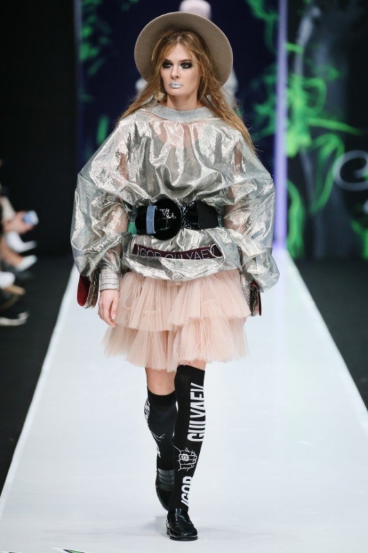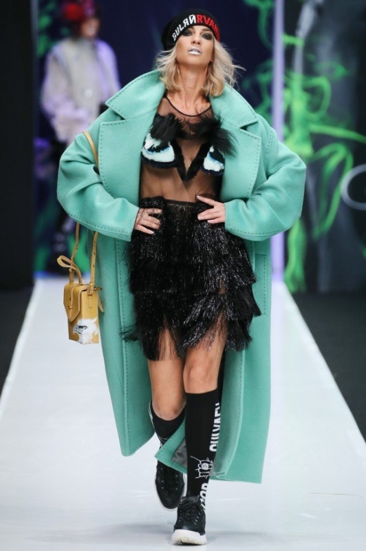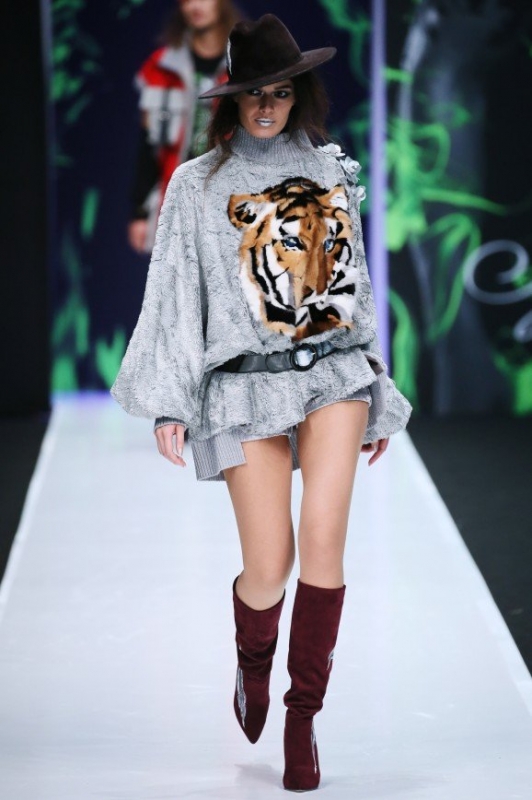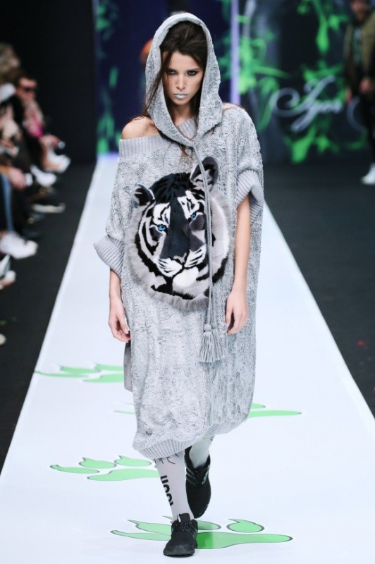 Каждый наряд был подобран под роль охотника или тигрицы — начав показ с сияющих кожаных курток для девушек и утепленных и практичных пальто для мужчин, Гуляев сразу расставил моделей по карте сражения. Принты, изображающие головы орлов, тигров и кошек, кошачьи глаза на женских топиках, отпечатки тигриных лап на жилетах — каждая деталь была продумана и продолжала тему показа. Некоторые модели даже выходили с пушистыми хвостами. Поскольку охотникам должно быть удобно охотиться, для них в коллекцию включили элементы стиля теквир —поясные сумки, карманы на груди и животе на свитерах. Блестящие кожаные куртки, плотные свитера-оверсайз с принтами, шерстяные гольфы. Аксессуары были тоже анималистичные — большие сумки, покрытые длинным мехом, широкополые шляпы с орлами и тиграми и множество моделей обуви — от лаковых каблучков до бархатистых сапожек для конной езды и вплоть до пушистых туфель-лап, как будто прямо из книги «Там, где живут чудовища». Снова модели вышли на финальное дефиле, и с неба струями пошел пар. На подиум вышел неизменно молодой Игорь Гуляев, неся с собой любимого кота Грэя — настоящую звезду Интернета — чтобы снова закрыть еще один сезон Mercedes-Benz Fashion Week Russia, наполненный сюрпризами, визуальным наслаждением и невероятными талантами российских дизайнеров. В этот момент с точностью стало понятно, что эта охота была по-настоящему успешной. Читайте нас в Facebook Рассказать друзьям Комментировать