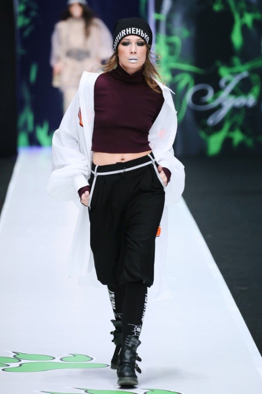 Otis 21-окт, 20:03 1 598Каждый наряд был подобран под роль охотника или тигрицы — начав показ с сияющих кожаных курток для девушек и утепленных и практичных пальто для мужчин, Гуляев сразу расставил моделей по карте сражения. Принты, изображающие головы орлов, тигров и кошек, кошачьи глаза на женских топиках, отпечатки тигриных лап на жилетах — каждая деталь была продумана и продолжала тему показа. Некоторые модели даже выходили с пушистыми хвостами. Поскольку охотникам должно быть удобно охотиться, для них в коллекцию включили элементы стиля теквир —поясные сумки, карманы на груди и животе на свитерах. Блестящие кожаные куртки, плотные свитера-оверсайз с принтами, шерстяные гольфы.