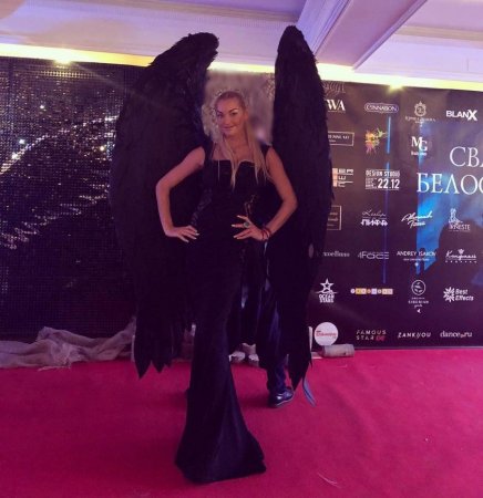 Бывшая прима Большого театра Анастасия Волочкова поделилась снимками, сделанными на днях на модном показе одного из столичных дизайнеров. В кадре балерина позирует перед папарацци в черном облегающем платье в пол и с двумя огромными черными крыльями на плечах, которые мгновенно притягивают к себе все внимание. Стоит отметить, что эпатажная артистка всегда с благосклонностью относилась к вычурным нарядам, способным выделить ее из толпы, однако сейчас, как выяснилось, крылья Волочковой были с чужого плеча.
