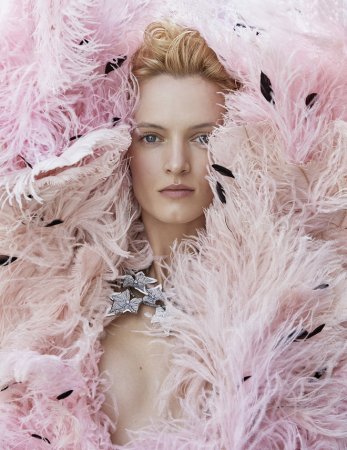 Платье-накидка Armani Prive поразила нас в самое сердце. Для съемок обложки декабрьского ELLE мы пригласили российскую топ-модель Дарью Строкоус, которая рассказала нам, как обычной первокурснице удалось попасть в список «Иконы индустрии» на models.com. Съемки проходили на крыше небоскреба, и Дарья в перьях Armani была похожа на волшебную птицу.