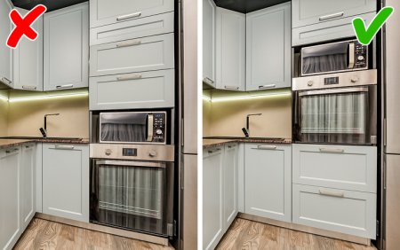 Самым уютным местом в квартире, конечно же, является кухня. Здесь мы проводим много времени, поэтому она должна быть удобной и многофункциональной. Однако неочевидные ошибки при планировании кухни могут привести к постоянному дискомфорту. Решили разместить плиту сразу возле холодильника, а на пол положить ламинат? Тогда эта статья для вас.Мы в AdMe.ru собрали наиболее распространенные ошибки, а также подготовили полезные советы, которые пригодятся каждому, кто хочет создать идеальную кухню (или немного изменить свою прежнюю). 1. Техника на неправильной высоте Не стоит размещать кухонную технику слишком высоко или низко. Ориентируйтесь на свой рост, лучшая высота — на уровне вашего пояса. Например, духовку лучше расположить на большей высоте от пола, нежели мы привыкли. В таком случае вам не придется все время нагибаться, чтобы ее открыть. 2. Тяжелые шкафы на легких стенах Перед тем как вешать полки и шкафы, следует проверить надежность стены. Размещать системы хранения можно только на несущей стене. Тонкая гипсокартонная перегородка не выдержит вес, поэтому лучше не рисковать. Если выбора нет, стоит установить специальные опоры (закладные детали) на такие стены для крепления шкафов. 3. Раковина «неправильной» формы Стоит отнестись ответственно к выбору раковины. Не гонитесь за красотой, самое важное — это практичность. Если вам всегда нравились круглые, не стоит устанавливать квадратную, так как это вас будет постоянно раздражать. Мойка для кухни должна быть вместительной и выдерживать высокую температуру. Также важно выбрать удобную глубину: по мнению специалистов, 160–200 мм — оптимально и удобно. 4. Незадействованные углы Углы есть в каждой кухне. В небольшом помещении, где необходимо задействовать каждый сантиметр, важно продумать пустующие углы. Поворотная карусель в угловом шкафу — идеальная замена неудобным ящикам. Складные дверцы стоят чуть дороже, но они незаменимы: можно использовать все пространство внутри, освобождая тем самым видимые поверхности. Угловые или диагональные ящики — другая прекрасная альтернатива простаивающим зонам для хранения. Можно даже разместить там плиту или раковину, однако не забудьте про хорошее освещение. 5. Лишние швы на кухонном фартуке Многим нравится стеклянный фартук на кухне, это действительно выглядит эффектно. Под стекло можно поместить любые красивые фотообои. Однако стоит помнить, что добиться абсолютной герметичности не удастся, поэтому за стеклом начнут копиться пыль и грязь. Из-за приготовления еды будут появляться разводы. А желание сэкономить и приобрести обычное стекло обернется трещинами и сколами. В итоге кухня будет выглядеть неряшливо и некрасиво. Если все равно хочется использовать стекло, закажите одно длинное стеклянное полотно, а не несколько коротких, собранных встык. Самый надежный и долговечный фартук делают из закаленного стекла, не экономьте на материале. 6. Недостаточное количество света Освещение на кухне очень важно. Светлые кухни визуально кажутся более освещенными, однако, если вы предпочли темные шкафы или стены, обязательно продумайте количество светильников. Следует сделать несколько уровней подсветки на кухне: основной свет сверху; свет, направленный на рабочую зону; подсветка и красивая лампа над обеденным столом (если он есть). Также важно р