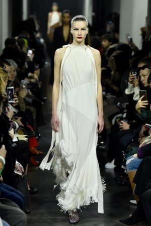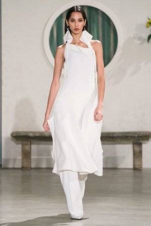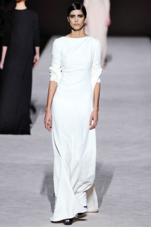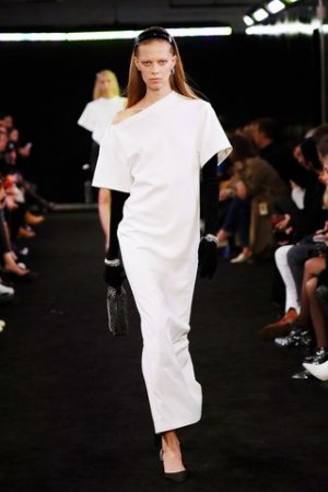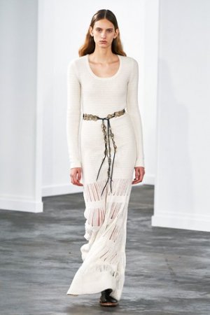Силуэт колонны Alexander Wang вдохновлен типом футболок, которые вы обычно носите дома. В то время как предложение The Row с глубоким круглым вырезом простое, но с отделкой couture.