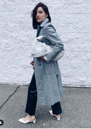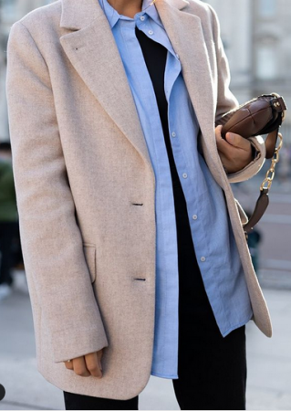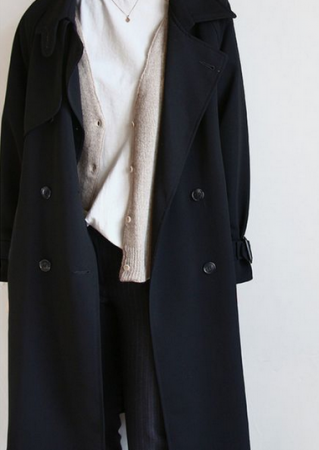 Плащ и пальто. В идеале очень простые модели без ничего. Гладкая поверхность и даже застежка скрыта. Силуэт максимально простой. Самая значимая хараткеристика — цвет. Мышиный, грибной (то, что называют тауп), хаки, глубокий синий, светлый серый, графит, черный и так далее.