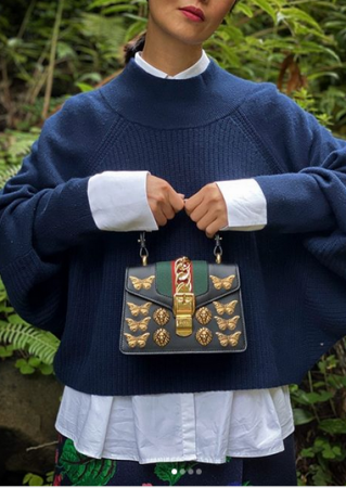 Важную роль играют украшения. Гладкая поверхность, мелкие детали или наоборот, гипертрофировано увеличенные. В тренде одновременно крупные цепи в роли колье и браслетов. И в то же время — мелкие нежные колечки и подвески из золота. В целом сейчас золото актуальнее белых металлов. Кстати, не забудьте, что пояс — почти украшение в этом контексте.