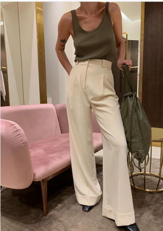 Важно выбирать актуальные модели брюк. Трендовый силуэт в тканях и оттенках, подходящих для этого направления. Сегодня силуэт приветствуется свободный: широкие длинные брюки, кюлоты или модели, зауженные книзу.