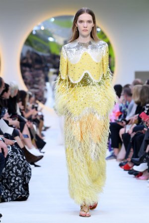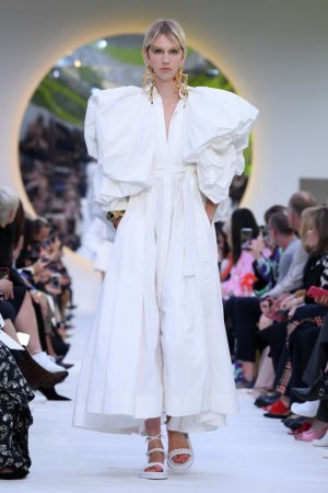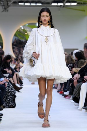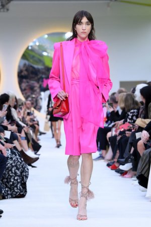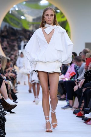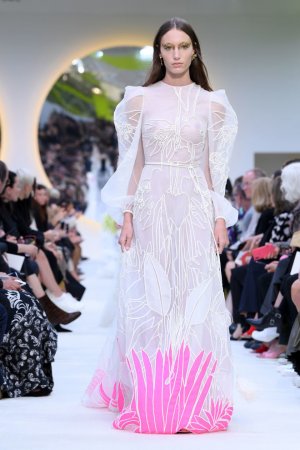 В парижском Дворце Инвалидов завершился показ Valentino — один из самых долгожданных и эффектных. В абсолютно белом пространстве гостей ждали неоново-зеленые лавочки, громадное зеркало в виде диска и небольшие карточки, в которых Пьерпаоло Пиччоли дал подсказку: в новом сезоне его вдохновил гризайль — особая техника рисования, при которой используется только один цвет. Этот вид живописи помогает лучше разглядеть форму и ощутить объем, которые выходят на первый план при отсутствии многообразия оттенков. Переосмыслив гризайль, дизайнер свел к сути белые рубашки, юбки и шорты, придав обычным вещам экстраординарности — это заставило пристально вглядываться в замысловатый крой самых привычных элементов гардероба.К слову, белоснежным образам, которых было не меньше десятка, ничуть не уступали интерпретации в ярких тонах: на подиуме появились летящие платья всевозможных флуоресцентных оттенков, блузы с принтом в виде обезьян и лиан, а также необычные и изящные украшения из «ломанного» золота. Детали Перья, плетеные сандалии, сумки с яркой вышивкой, крупные серьги из золота, амулеты, глиттер на глазах моделей, солнцезащитные очки в неоновой полупрозрачной оправе.