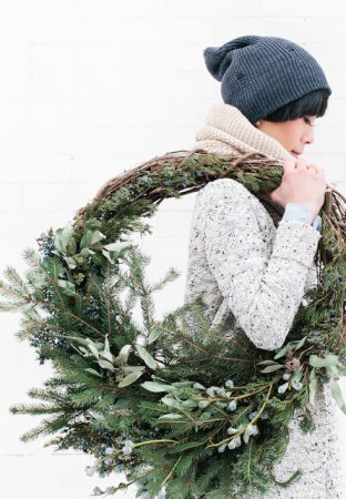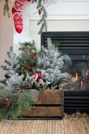 Новогодние праздники невозможно себе представить без хвойных растений и их неповторимого аромата. В зимнем декоре интерьера можно использовать не только традиционную рождественскую елку, но также другие оригинальные украшения из хвои с дополнением различных украшений в том числе природных материалов.Есть много идей декора из вечнозеленых растений, которые помогут создать в интерьере атмосферу уюта и праздника, а также придать нарядный вид экстерьеру дома. Венок – один из самых распространенных зимних и рождественских украшений, который можно использовать, как для декора внутри помещений, так и для внешнего оформления дома. Пышный венок из хвойных растений, который дополнительно можно украсить ягодами и эвкалиптовыми ветками будет отлично смотреться и принесет ощущение природы в пространство. Таким праздничным декором можно украсить дверь, окно, лестницу, стену, а также камин или выделить какую-либо часть вашего дома. Роскошная вечнозеленая гирлянда – еще один способ, чтобы создать атмосферу зимнего праздника в вашем доме. Можно оформить гирляндой входную дверь, добавить огни, украшения и звенящие колокола, чтобы сделать переднее крыльцо нарядным. Также можно декорировать зеленой гирляндой арки в вашем доме, сделать новогоднее украшение лестницы с огоньками или звездами. Можно собрать зимний букет, используя кашпо, вазу либо другую емкость. Смешать хвойные растения с украшениями в различных цветах, сосновыми шишками, эвкалиптом. Также прекрасным дополнением к праздничному букету станут красные зимние ягоды в виде калины или шиповника.