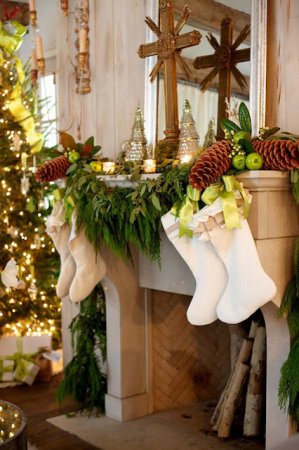 Венок – один из самых распространенных зимних и рождественских украшений, который можно использовать, как для декора внутри помещений, так и для внешнего оформления дома. Пышный венок из хвойных растений, который дополнительно можно украсить ягодами и эвкалиптовыми ветками будет отлично смотреться и принесет ощущение природы в пространство. Таким праздничным декором можно украсить дверь, окно, лестницу, стену, а также камин или выделить какую-либо часть вашего дома.