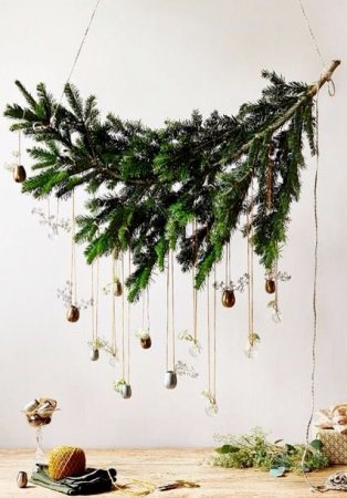 Carter 22-дек, 00:00 1 571Новогодние праздники невозможно себе представить без хвойных растений и их неповторимого аромата. В зимнем декоре интерьера можно использовать не только традиционную рождественскую елку, но также другие оригинальные украшения из хвои с дополнением различных украшений в том числе природных материалов.