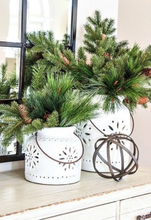 Есть много идей декора из вечнозеленых растений, которые помогут создать в интерьере атмосферу уюта и праздника, а также придать нарядный вид экстерьеру дома.