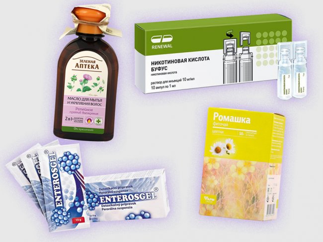 Думаем, ты и так все знаешь: репейное масло укрепляет волосы, ресницы и брови. Само по себе масло не очень удобно использовать, не измазавшись с ног до головы – к счастью, существуют аптечные шампуни на основе бесценного компонента. Другое полезное средство для роста локонов – никотиновая кислота. Несмотря на название, содержится она вполне в мирных продуктах – рыбе, печени, гречке. В аптеке, как правило, представлена в виде ампул. Они стимулируют кровообращение, расширяют сосуды, улучшают обменные процессы.