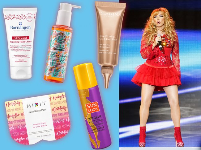 Жидкие колготки, Sun Look Пенка с витамином С, Natura Siberica Восстанавливающий крем для рук, BarnangenКрем для подтяжки зоны шеи и декольте, Clarins Маска для ягодиц, MIXIT