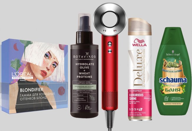 Фен, DysonЛак для волос, WellaШампунь для волос, Schauma Набор для холодных оттенков блонд, L'Oreal Professionnel Кондиционер для укрепления волос, Botavikos