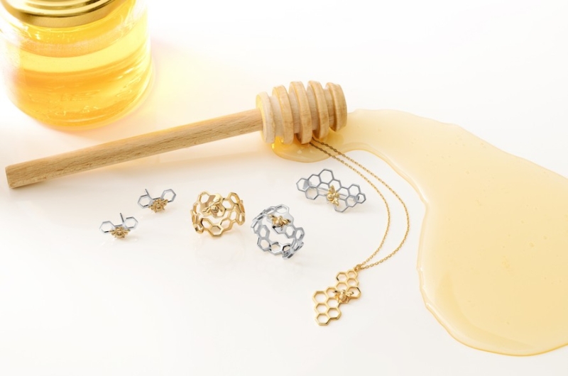 Ювелиры SUNLIGHT подчеркнули серебром 925 пробы идеальную пропорцию шестигранников, а некоторые модели изготовлены в технике биколор, что позволило позолотой выделить пчелку на фоне композиции. Кстати, тема флоры и фауны и техника биколор в ювелирном искусстве являются трендовыми уже несколько лет, их также можно встретить в коллекциях многих мировых брендов. Капсула включает в себя колье, браслеты, кольца, серьги, чокеры и каффы.