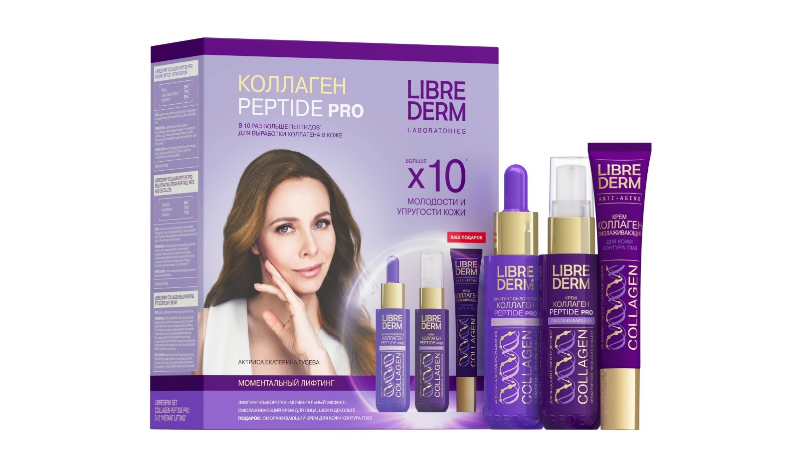 Подарите себе или близким красоту и молодость с набором от LIBREDERM! Коллекция Collagen peptide создана, чтобы дарить коже лица, шеи и декольте мгновенное преображение и подтяжку, обеспечивая эффективный уход и восстановление. В наборе: омолаживающий крем для лица, шеи и декольте, лифтинг-сыворотка с мгновенным эффектом, крем для кожи вокруг глаз.