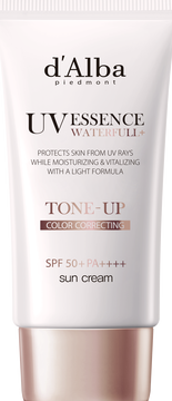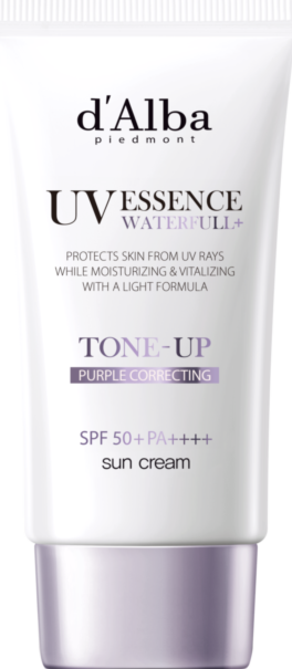 Солнцезащитный крем Waterfull Tone-Up Sun Cream SPF50+ PA++++ от d’Alba — средство, которое одновременно обеспечивает стойкую защиты кожи лица от воздействия солнечных лучей и осветляет тон, придавая ей деликатное сияние.
