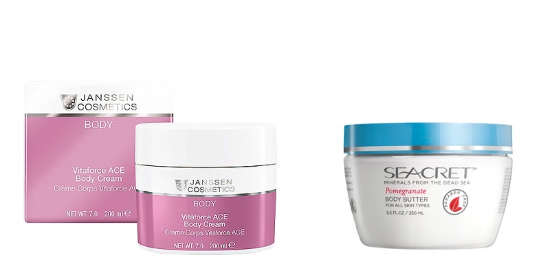 Насыщенный крем для тела с витаминами A, C и EVitaforce ACE Body Cream, 4 046 руб., Janssen; крем-масло для тела «Гранат»Body Butter Pomegranate, 4 620 руб., Seacret