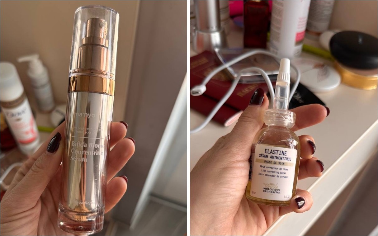 У меня много сывороток от Biologique Recherche, но скажу сразу, не все косметологи от них в восторге. Есть клиники, которые работают исключительно на этой марке. Я в них ни разу не была, хотя нужно, чтобы консультант по Biologique посмотрел твоё лицо и полностью подобрал продукцию. Я это делаю самостоятельно – вижу классный обзор у блогеров и покупаю или прихожу в салон и говорю «у меня такая-то проблема, что посоветуете?». У меня есть три сыворотки от Biologique Recherche – Amniotique VG, Dermopore и Elastine. Напоминаю, косметику мы выбираем индивидуально.