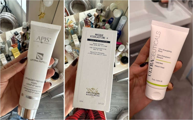 Масок у меня много – и очищение, и питание, и увлажнение. В топе – маски от Biologique Recherche. Всем своим подругам рекомендую Masque Visolastine +, которая хорошо увлажняет кожу. Взяла на пробу маску от Ultraceuticals – по ощущениям кожа становится напитанной и плотной – это как раз то, чего мне сейчас не хватает.
